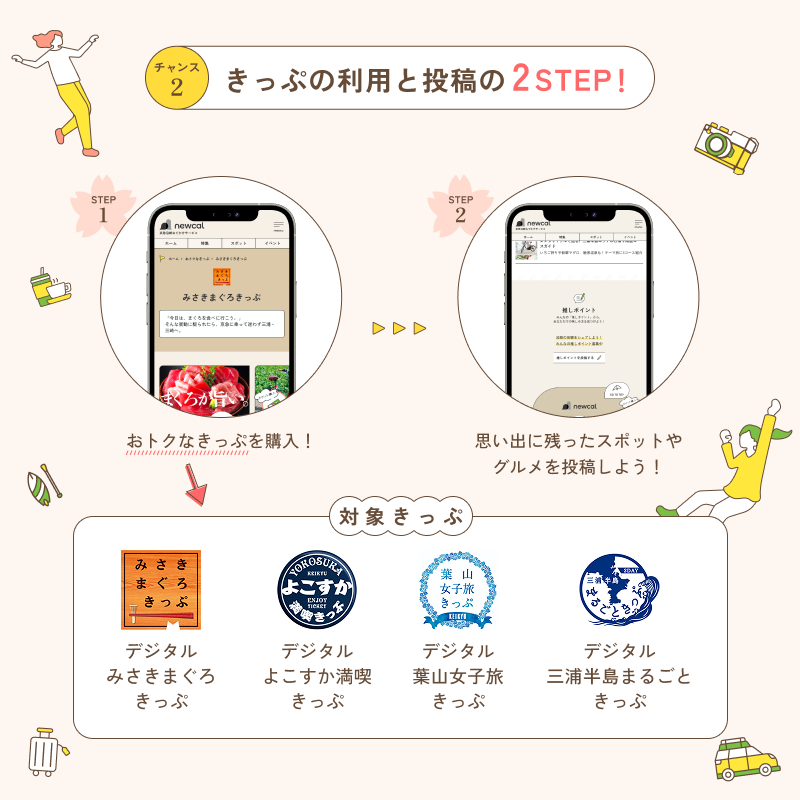 ※おトクなきっぷはデジタルみさきまぐろきっぷ、デジタルよこすか満喫きっぷ、デジタル葉山女子旅きっぷ、デジタル三浦半島まるごときっぷが対象となります。