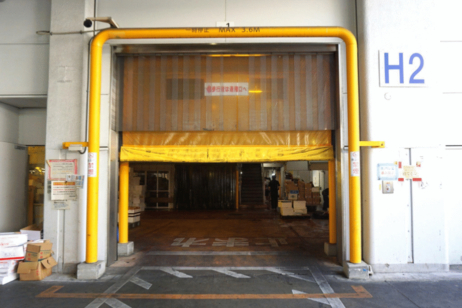市場内を不自由なく行き来する車のための上下開閉型の自動ドアですが、見慣れない私にとってはこれも新鮮。ついワクワクしながらくぐってしまいました。