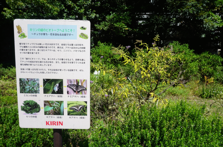 芝生の原っぱをはじめ、工場敷地内には緑がたくさん。原っぱとビオトープをつなぐ道は、森の中を探検しているかのようで、工場地帯のど真ん中にいることを忘れてしまいそうでした。さまざまな高低木がぎっしり。訪れたのが秋だったため、どこからともなく虫の鳴く声がしていました。
