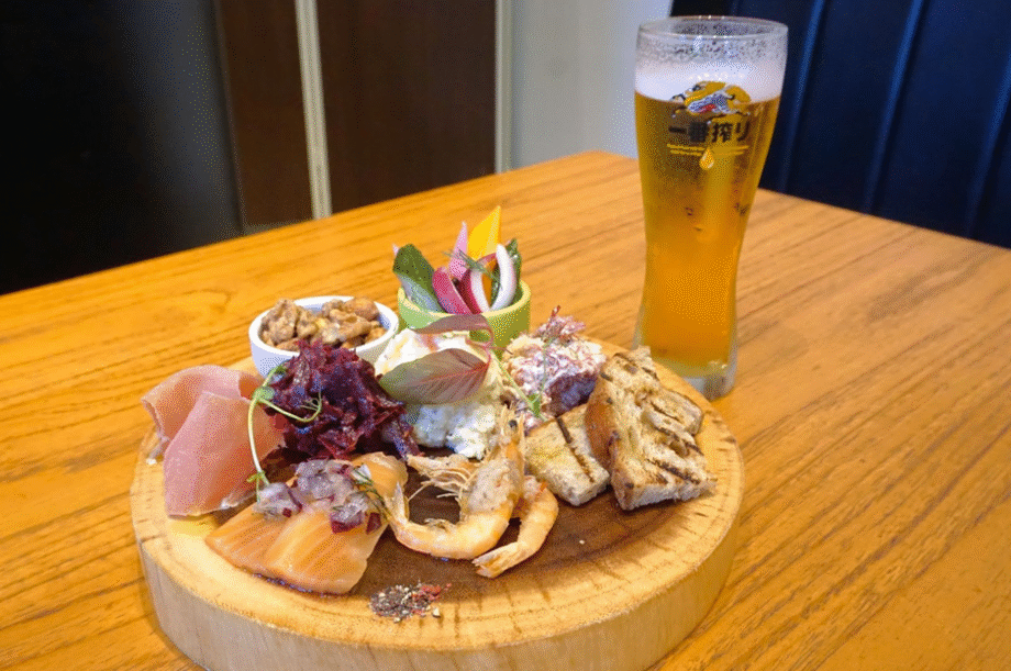 あまりお酒に強くない私がどのビールを注文しようかと悩んでいると「やっぱり何にでも合うのが『一番搾り』ですよ」と店員さんにアドバイスいただき、一番搾りを注文することに。