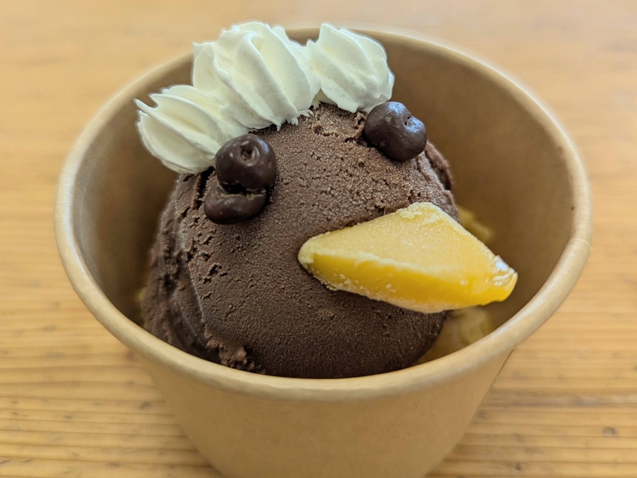 お子さんにおススメなのは、「タカナシ乳業」のジェラートを使った「カグージェラート」。ニューカレドニアの国鳥である「カグー」という鳥をかたどっています。