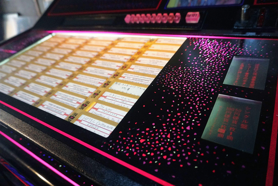 店の片隅には、レコードの自動演奏装置「ジュークボックス」がありました。50円を入れると、選んだ曲を1曲流してくれる機械とのこと。マスターは「1曲目は自分の得意な曲を入れて、好きな子に上手なダンスをアピールする。2曲目は好きな子と一緒に踊れるように考えて選曲する」のだと青春時代を思い出しながら、ジュークボックスの思い出を語ってくれました。