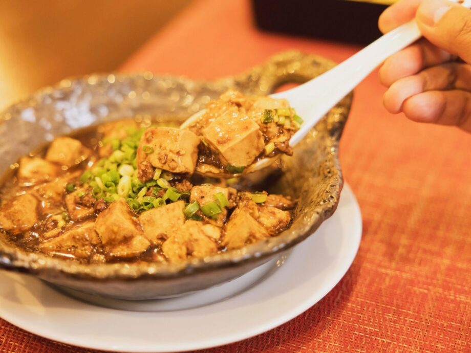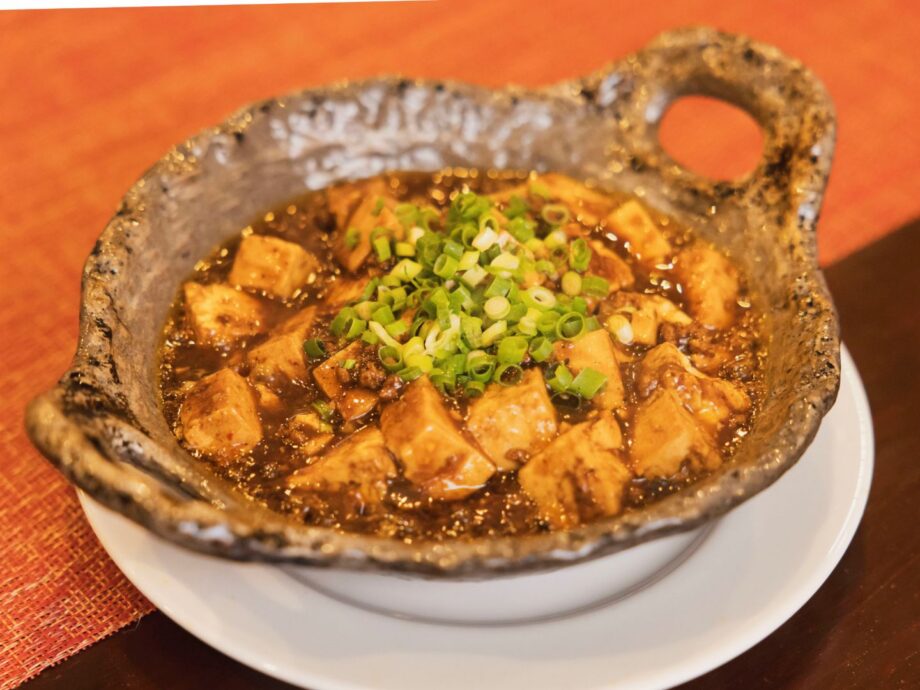 中華鍋が振られるたびに、大豆白絞油で熱された豆板醤の香りが漂い、お腹の虫も騒ぎ出します。土鍋で熱々のまま提供される麻婆豆腐は、表面がぐつぐつと揺れていました。