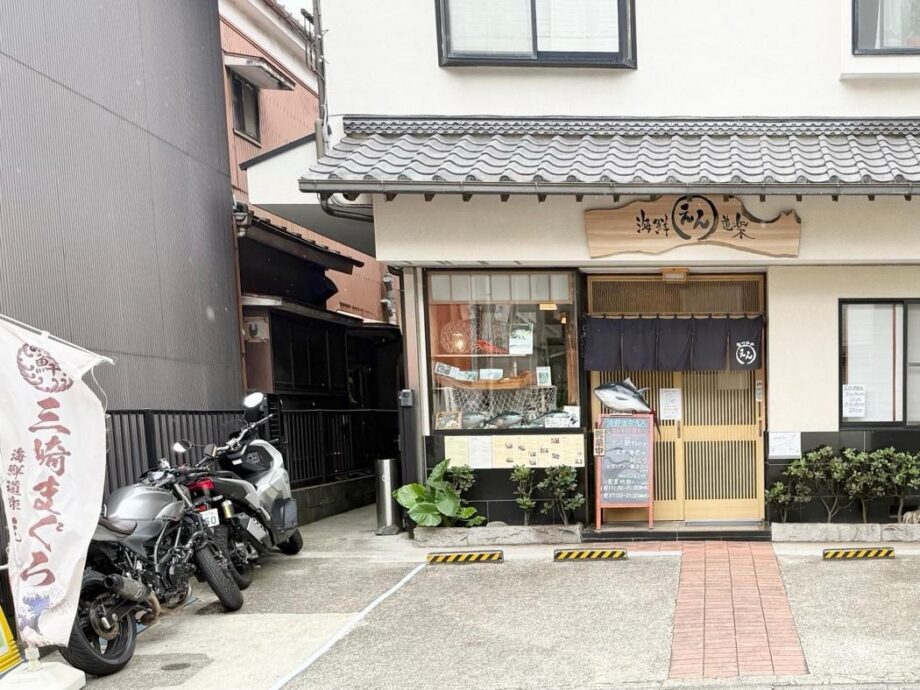 横須賀中央からバスで上町三丁目へ。徒歩2分の「海鮮道楽えん」は、三浦市三崎出身の店主、川﨑茂さんが営む名店です。