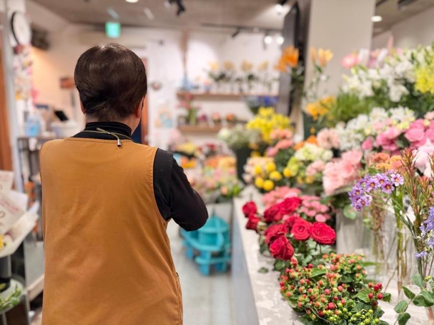 その言葉通り、店内には、花が仕上がるのを待ちながらおしゃべりを楽しむ人や、静かに花を眺める人の姿がありました。ここには、慌ただしい毎日を、忘れさせてくれる穏やかな時間が流れています。