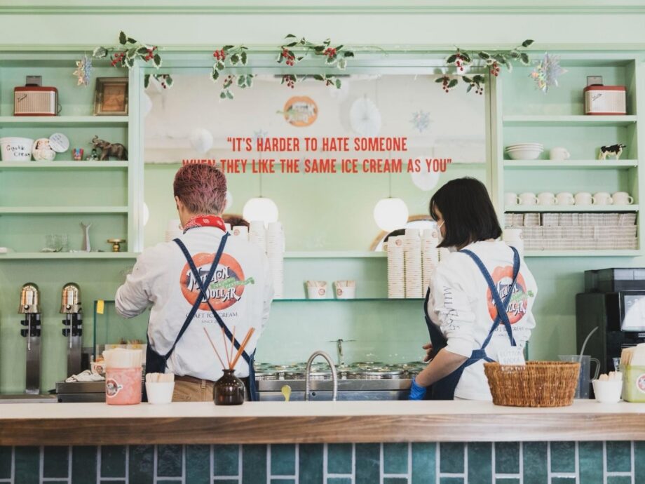 「子どもの頃に食べたアイスっていつまでも覚えているでしょう。だから、子どもたちが大人になっても来たくなるようなお店をつくりたかった」(画像左側・今さん)