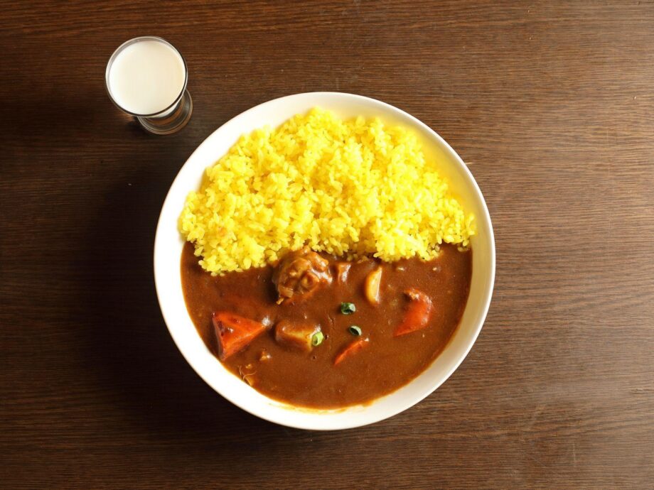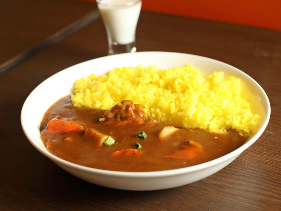 海軍カレーは栄養バランスを考慮し、サラダと牛乳を必ず添えることが提供のルールとなっています。ニルヴァーナでも当然、牛乳付きです。