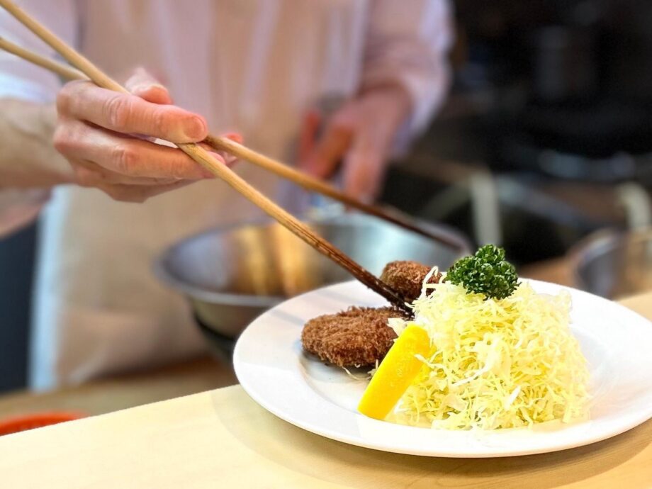 丁寧に開いたヒレ肉の筋を細かく切り、驚くほどの柔らかさを実現。衣には牛乳を加えてほんのりとした甘みを引き出した溶き卵と、生パン粉を使用。この一つひとつの丁寧な仕事が、他では決して味わえない「やなせ支店」ならではの芳醇な旨みと軽やかな食感を生み出しています。