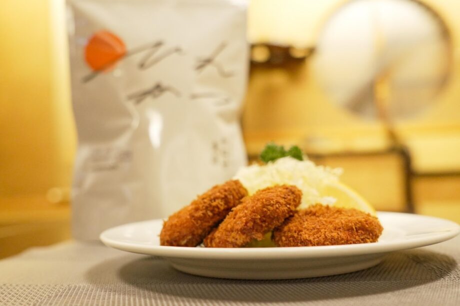 「コロナで休業を余儀なくされたことや遠方のお客様にも味を届けたいという思いがありました。最新の冷凍技術を知り、挑戦してみようと思いました」と話します。横浜市にある冷凍会社を見学し、本格的に冷凍ひれかつの開発を始めました。お店と同じ材料、同じ工程で作ったひれかつをパックし、-30度の液体で瞬間冷凍しています。