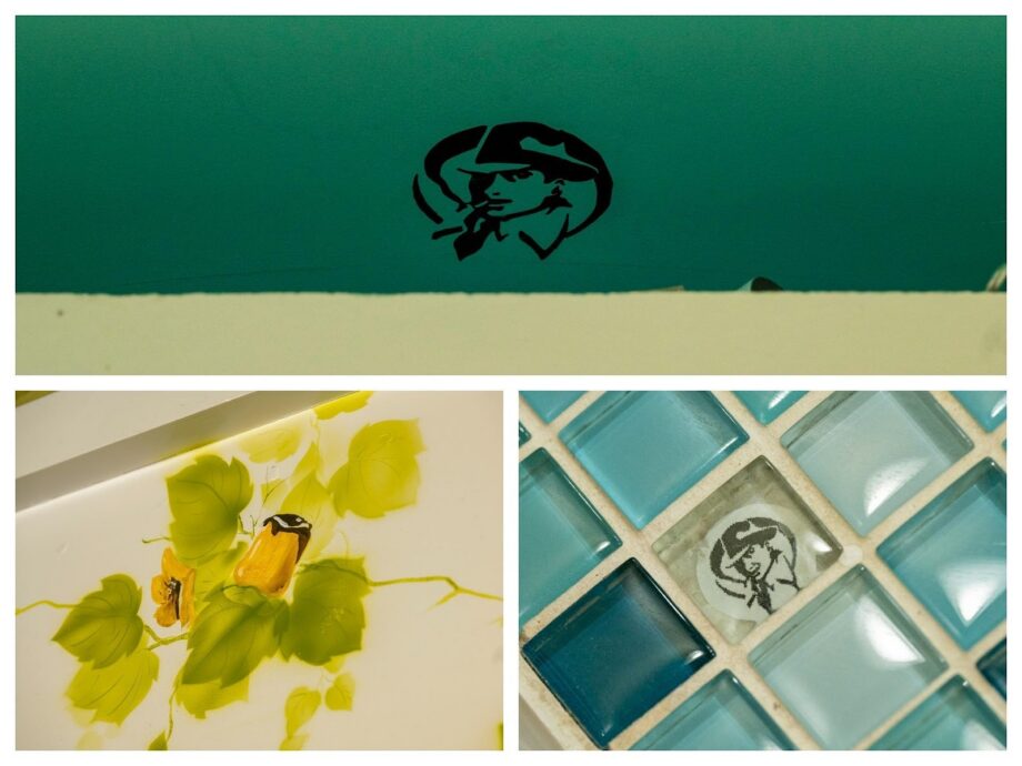 店内はアチコチに絵画が飾られておりカラフルな装い。柱や壁にマーロウおじさんの隠し絵があるので、探す楽しみもあります。