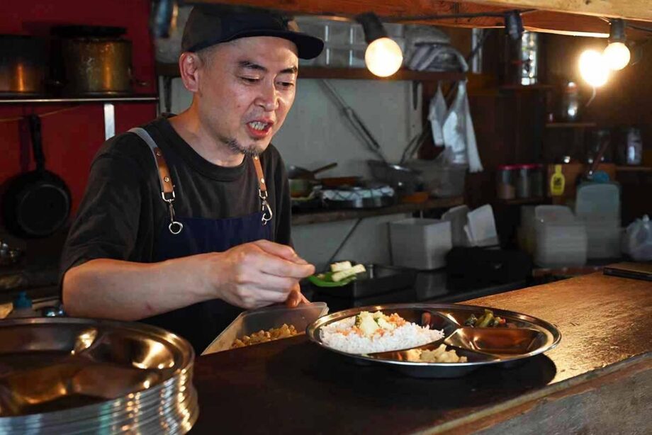 「去年インド旅行に行く予定が流れてしまって、それなら妄想の中でインドの世界を作り上げてテンション上げていこう…と、そこから生まれたメニューです(笑)。バナナの葉っぱにカレーや料理を盛り付けて、今までそんな発想で料理をすることがなかったからすごく楽しくって。でも仕込みに2日かかるので、月1回がやっとの状況。お客さんの中にはヨガに精通している人も多くて、そういった方たちやビーガンの方たちが興味持ってくださるのも嬉しいですね」