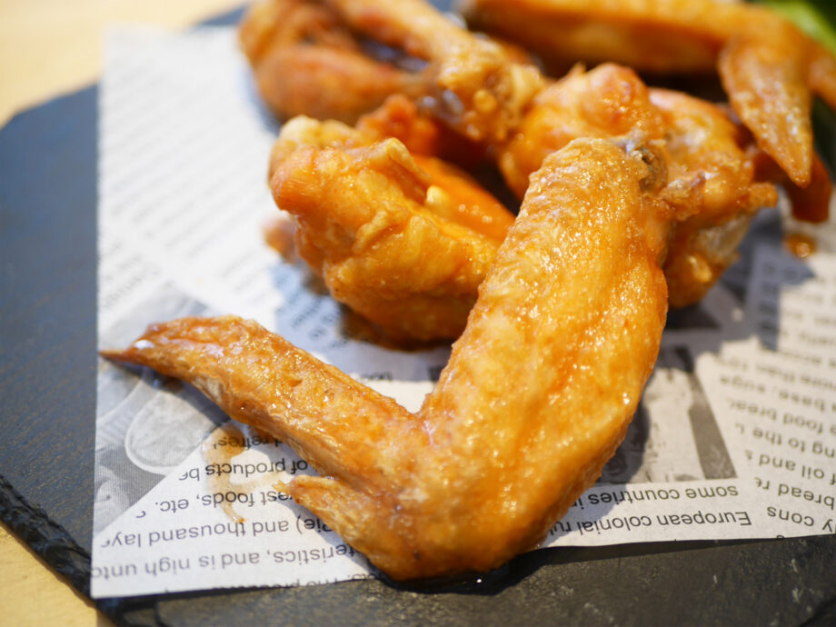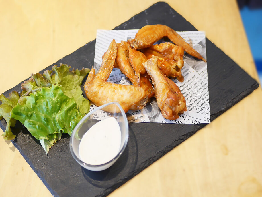 もう一つの人気メニューが「バッファローウイング(5ピース980円税込)」。現地同様、肉厚の手羽元と手羽先を二度揚げし、スパイシーな自家製バッファローソースで仕上げます。