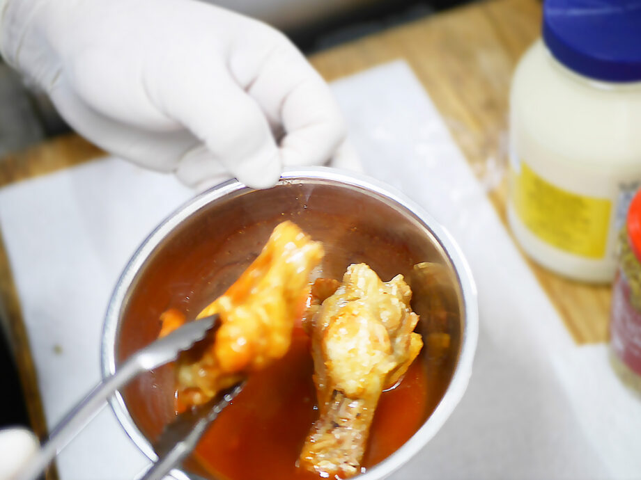 添えられるビネガーの酸味が特徴のブルーチーズソースも本場仕込み。ピリ辛ソースの刺激と濃厚で爽やかなソースのコントラストがクセになる味わいで、外国人客からも「本場そのまま」と声を掛けられるほどです。