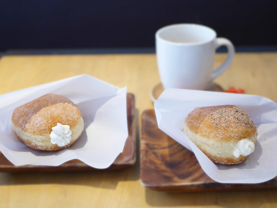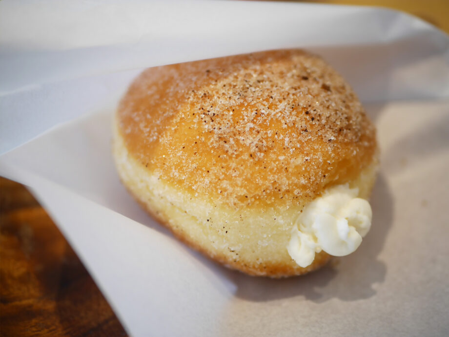 その特徴を最も感じられるのが、グラニュー糖をまぶしたシンプルな「シュガー(300円税込)」や、たっぷりの生クリームを詰めた「+生クリーム(120円税込)」の組合せです。