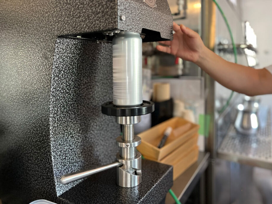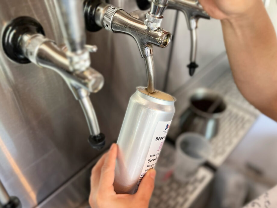 そこで導入したのが500ml用のアメリカ製缶シーマー。好みのビールを+150円で缶詰め可能にしました。