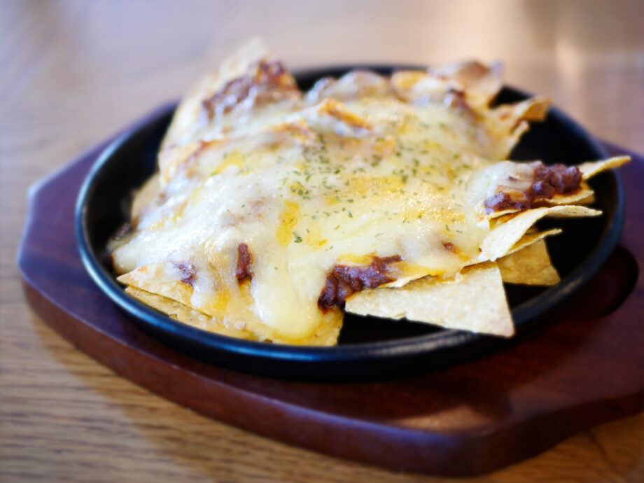 好みのビールを見つける時、一緒に味わいたいのが軽食フード。人気No.1の「チリコンカンナチョス(935円税込)」は、トルティーヤチップスに挽き肉などをチリパウダーで煮込んだスパイシーな“チリコンカン”と、たっぷりのチーズがのった一皿。シェアしやすく、会話と共に楽しめます。