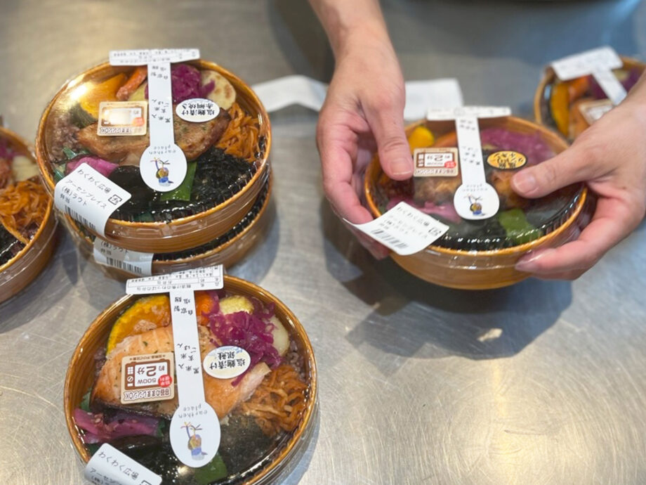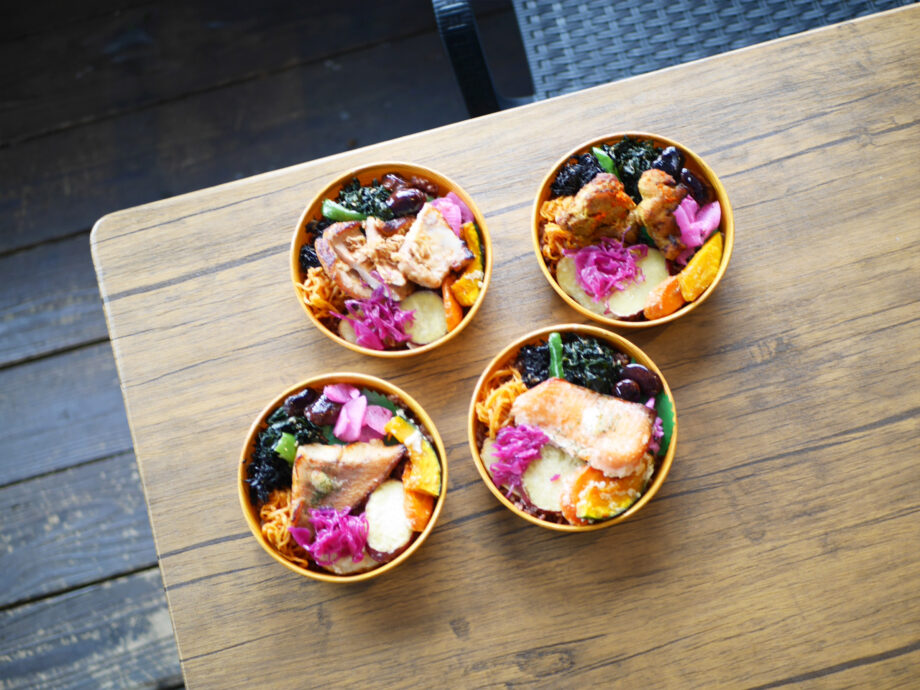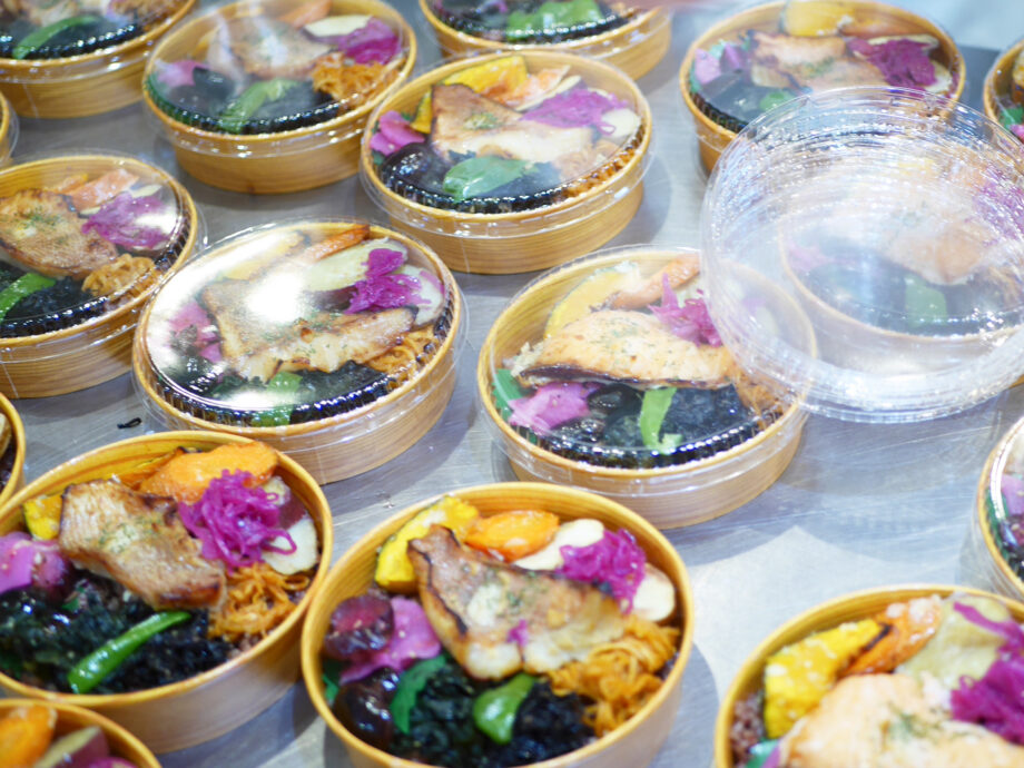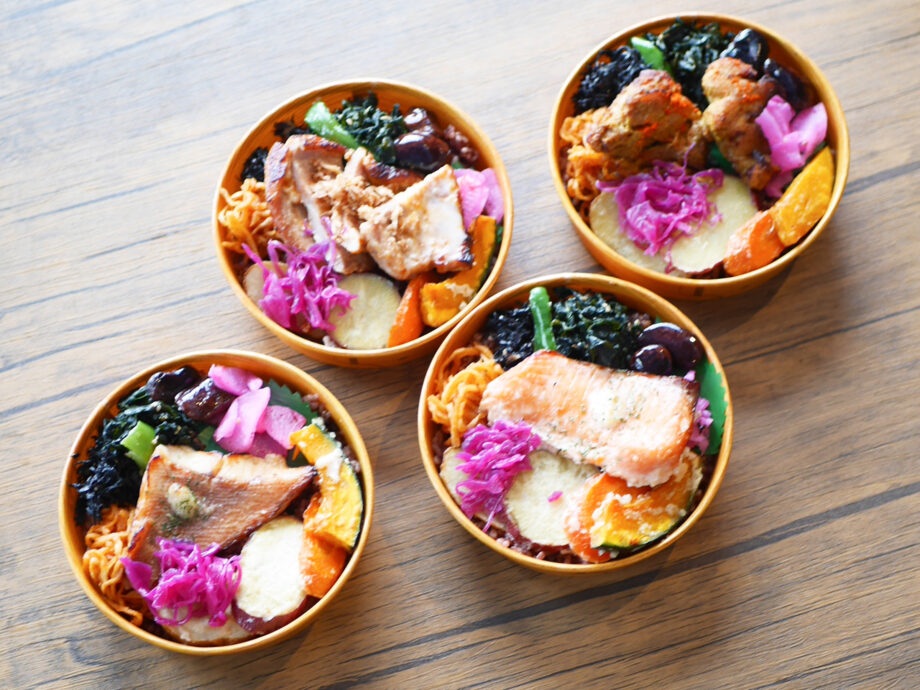主菜は前日から漬け込むことで、食材が柔らかくなり、旨みが凝縮されます。ご飯は黒米と玄米のブレンド。副菜には、主に三浦半島産の野菜を塩麹で和えたものが使用されています。にんじんやカボチャ、紫キャベツの酢漬けに、ひじきやわかめ。和の味に偏らないよう、アラビアータの切干大根が添えられるなど、彩り豊かでバランスの良い内容がこだわりだといいます。