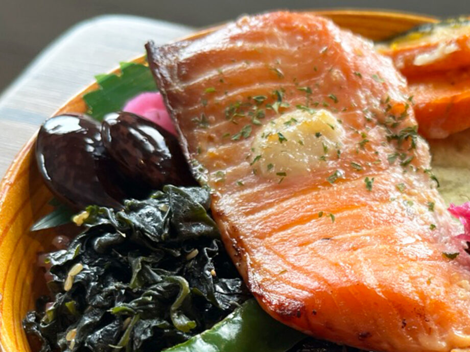 人気の「塩麹漬け鮭わっぱ弁当」は、塩麹の優しい塩味と、麹の甘み、さらに発酵の深い香りが鮭の旨味を高め、風味豊かな美味しさ。黒米入り玄米ご飯との相性も抜群で、噛むほど素材本来の味わいが広がり箸が進みます。