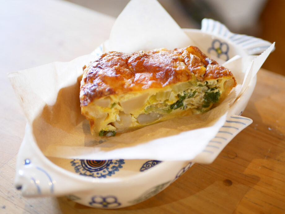 キッシュもホタテなど具材がびっしり。生地はふわっとしており、口に運ぶほどに旨みが口いっぱいに広がります。パスタやデザートのシフォンまで、全てに手間をかけた美味しさで、毎日でも食べたくなるランチボックスです。