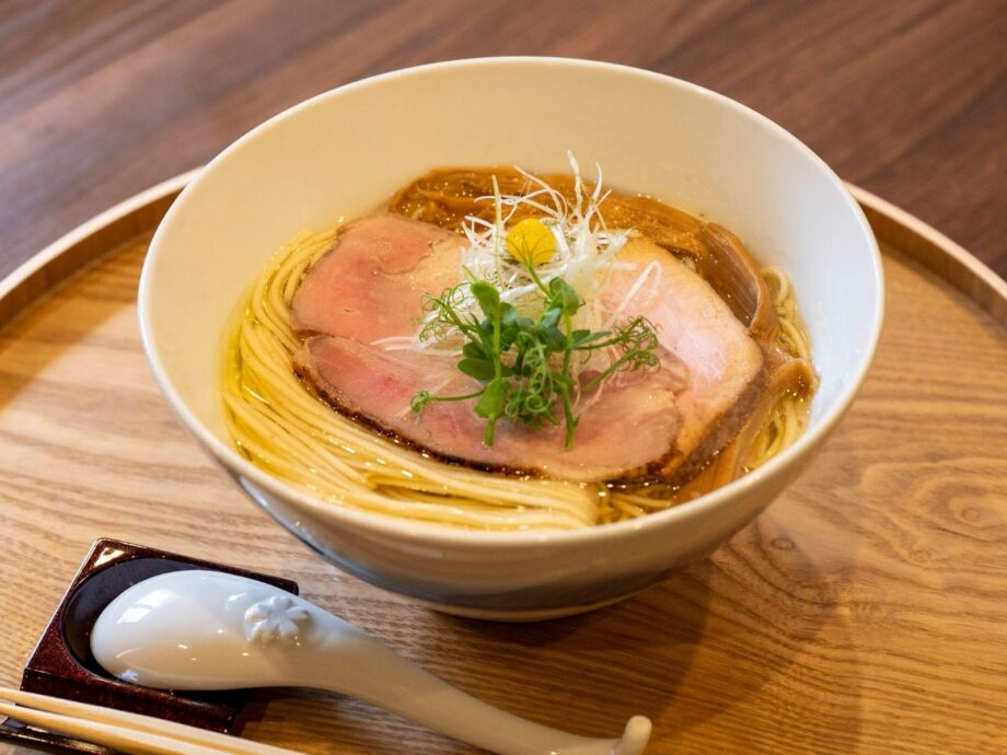 人気メニューの「淡麗塩らぁ麺」(1,200円)をオーダーしてみました。中細の自家製麺を一口すするとツルツルとした喉越しとプリッとした弾力に、新鮮さを覚えます。何よりそれに絡むスープは、淡麗と言いつつも魚介などが複雑に絡み合う素材の風味に、いつまでも飲み続けてしまいそうな旨味があります。
