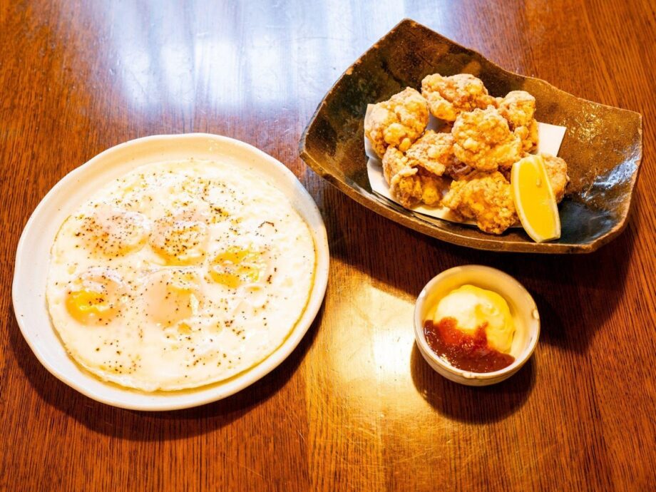 「鳥唐揚げ辛味噌マヨ添え」(700円)は、注文してから揚げる鳥の唐揚げのディップが出色。辛味噌とマヨネーズが合わさったディップはコクとジャンキー感が合わさって、唐揚げの美味しさを倍増させます。