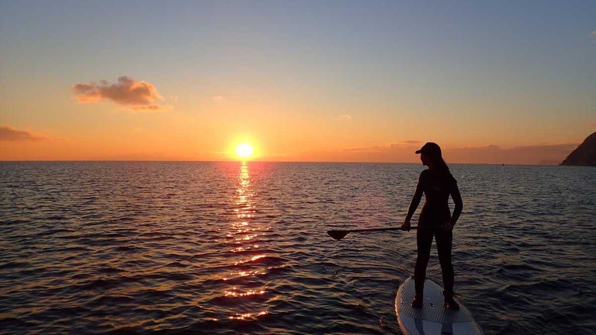 SUP+SUPヨガ1日コース。1日たっぷり楽しむ贅沢コース。SUPの基本動作を学び、安全に楽しく海をクルージング。SUPヨガは体幹をしっかり意識してポージング。楽しみながら筋力、バランス力がアップします。大空の下、風と海の揺らぎを感じながらのヨガは、室内ヨガとは異なる開放感。リフレッシュ&リラックス!とても充実した1日を過ごすことが出来ます。
