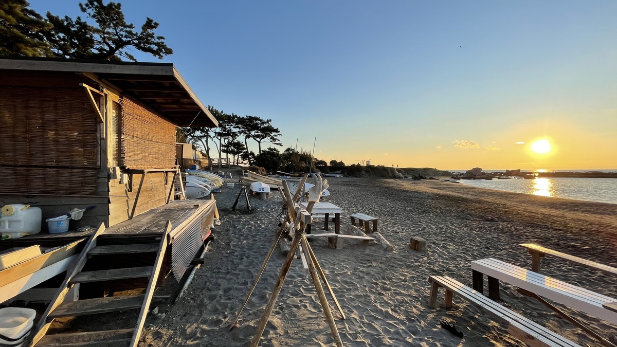 葉山御用邸前の一色海岸で夕陽を見ながら焚き火CAFÉ