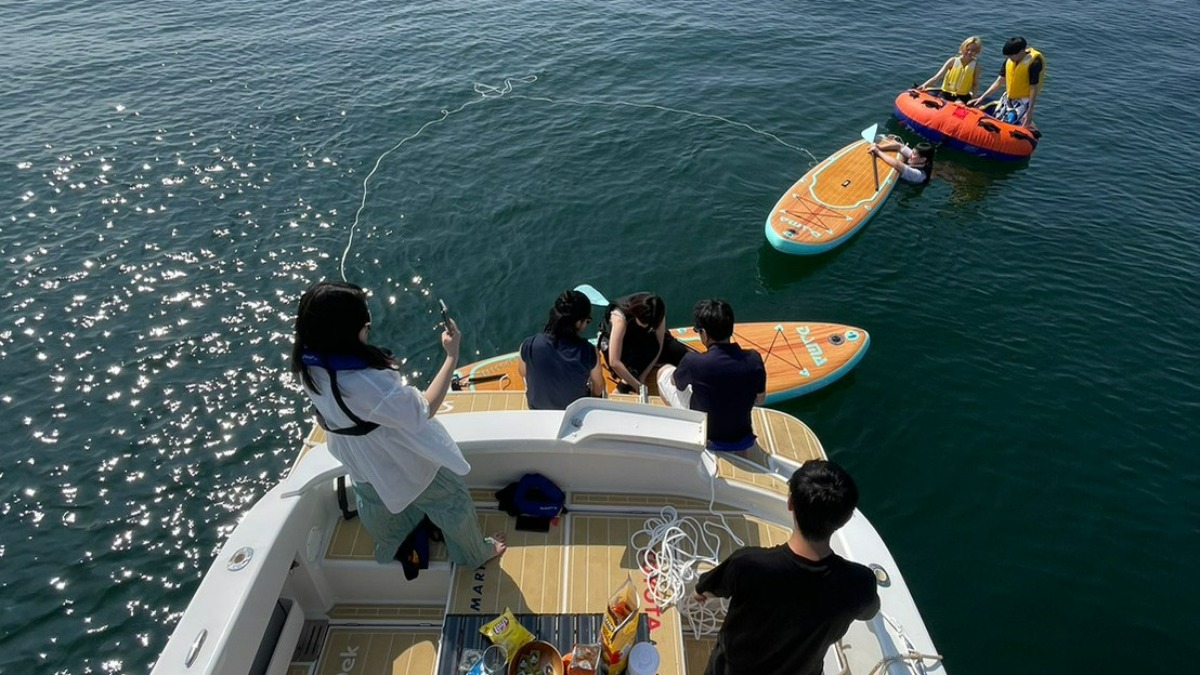 船から海に出て、海水浴などのアクティビティも行えます。特に人気のSUPは、立ったままパドルを漕ぎ進めるので、まるで海上散歩をしている気分です。(SUPは無料貸し出ししております)