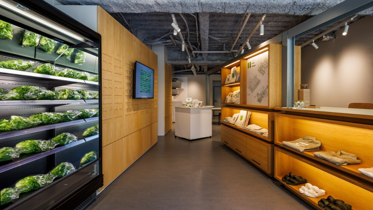 SHOPでは、FARM HANEDA4階栽培室で育てた採れたてのレタスやハーブを販売しているほか、オリジナルグッズも販売しています。