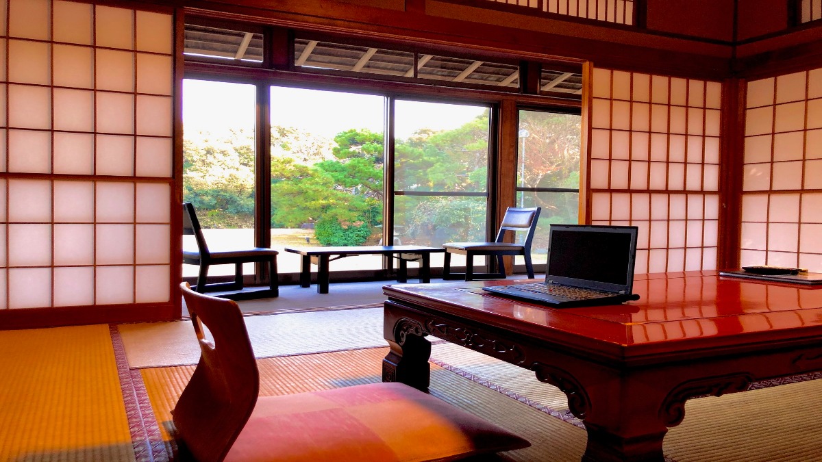松に囲まれた庭園や徒歩3分の逗子海岸など、自然豊かな環境でワーケーションが楽しめる。