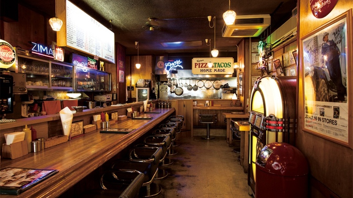 開店当時の雰囲気を今に伝える店内。カウンター越しに鉄板でパテを焼く音。全てが映画のワンシーンのようだ。バーガーを軽く潰して裏返し、パテに直接調味料をかけるのがハニービー流の食べ方。懐かしい中にもホッとする味のカレーもおすすめだ。