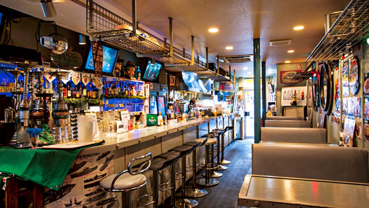 アメリカ海軍の隊員も訪れるお店で、本場のダイナーを思わせる雰囲気。野菜がたっぷり溶け込んだカレーや唐揚げがのるプレートは、海上自衛隊の護衛艦の中で現在も使用されているもの。店内でパテを練るところから手作りするバーガーはジューシーで食べ応えがある。