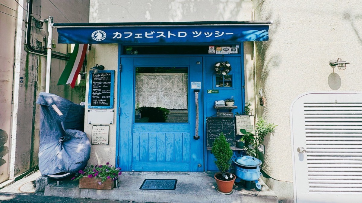 鮮やかなブルーのドアが印象的な一軒家レストラン「カフェ ビストロ ツッシー」。家族や友人と一緒に訪れるのはもちろん、一人でも気軽に通えるアットホームなイタリアンレストランです。
